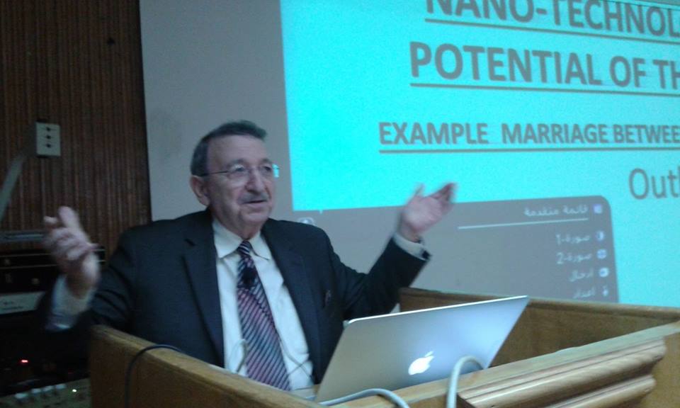 فى اطار افتتاح الفصل الطلابى للجمعية الكيميائية الأمريكية ونشاط نادى الأبحاث المرموقة بكلية العلوم يوم الجمعة الموافق 15/4/2016 ، قدم العالم المصرى الجليل الأستاذ الدكتور/مصطفى السيد الأستاذ بجامعة جورجيا الأمريكية ندوة تجمع بين أهمية علم النانو تكنولوجى فى مجالات العلوم والطب والهندسة والصيدلة وأن حبيبات الذهب النانومترية تستخدم فى علاج الخلايا السرطانية وأكد أن المهم تضافر الجهود فى مجال الدراسات النانومترية للتعامل مع الأمراض الخطيرة للقضاء عليها وأن جزيئات الذهب النانومترية قادرة على القضاء على الورم السرطانى فى خلال 3- 10 ساعات بلا رجعة .