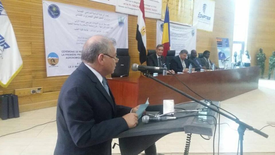 وصل صباح يوم الخميس الموافق 31 مارس 2016 الأستاذ الدكتور اشرف الشيحى وزير التعليم العالي والبحث العلمي إلى العاصمة التشادية انجامينا على رأس وفد رفيع المستوى يضم ا.د رشدى زهران رئيس جامعة اﻻسكندرية وا.د هشام جابر نائب رئيس الجامعة لشئون التعليم والطلاب وممثلين عن وزارة التعليم العالي وجامعة اﻻسكندرية وذلك لحضور حفل تخرج اول دفعة من خريجى كلية الزراعة- فرع جامعة اﻻسكندرية بتشاد والتى سوف تجرى مراسمه فى قاعة اﻻحتفاﻻت الكبرى بكلية الطب بجامعة انجامينا وقد كان فى استقبال الوفد المصرى البروفيسور مكاي حسن وزير التعليم العالى التشادى وا.د على عبد الرحمن حجار رئيس جامعة انجامينا والسفير ادهم محمد نجيب سفير مصر بدولة تشاد والسيد مدير فرع شركة المقاولون العرب بتشاد وممثل شركة مصر للطيران ولفيف من كبار مسئولى الدولة بانجامينا.