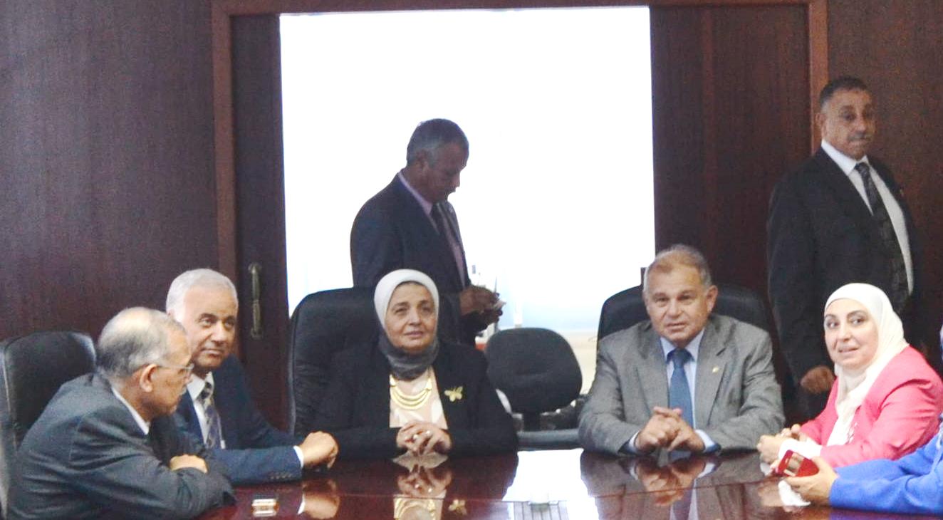 The meeting was attended by Prof. Dr. Essam El-Kurdi the University Vice President for Community Service and Environment Development, Prof. Dr. Abdel Aziz Konswa; Dean of the Faculty of Engineering, Prof. Dr. Ashraf Nazem; Dean of the Faculty of Veterinary Medicine, Prof. Dr. Kamal Metwalli, Director of Quality Assurance Center of AU and a group of teaching staff members.