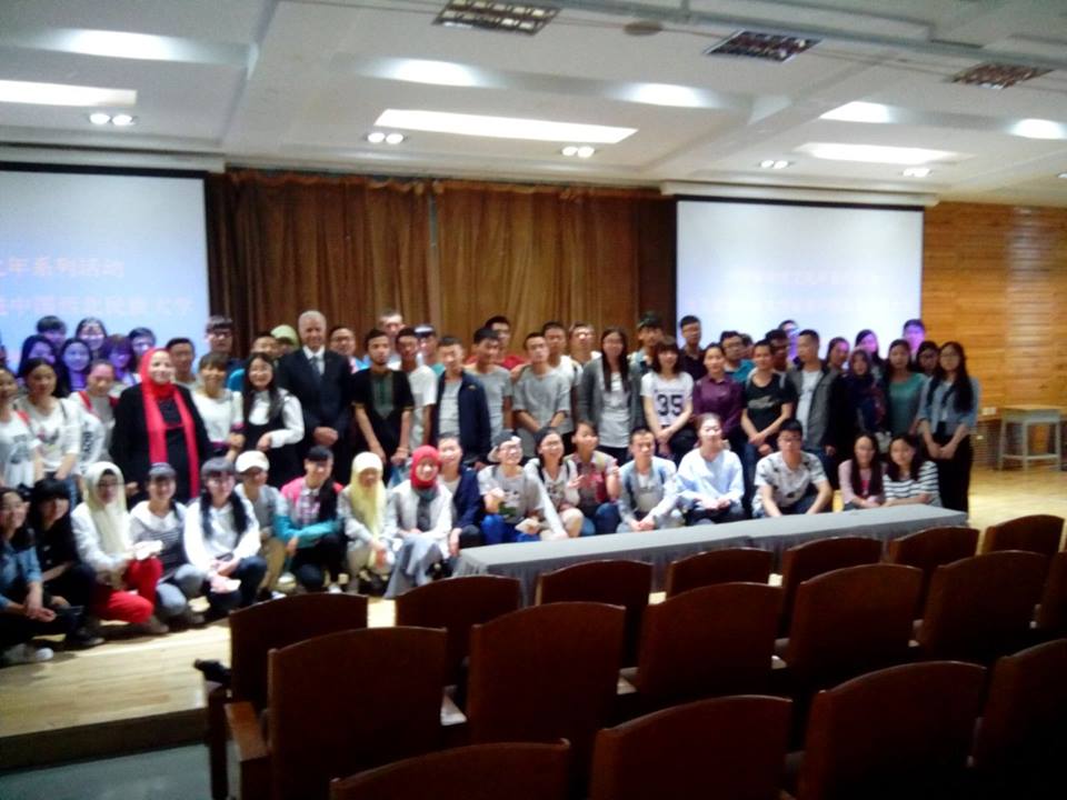 A delegation from Alexandria University headed by Prof. Dr. Essam El Kurdi, Vice President of Alexandria University for Community Service and Environment Development is currently visiting China. The delegation visited the School of Foreign Languages at Shanghai Jiao Tong University to discuss ways of cooperation between the two sides especially in the new program of the Arab language. The delegation visited the central library of Jiao Tong University where Prof. Dr. Essam El Kurdi delivered a lecture on the Alexandria University, Silk Road and cooperation with China. The lecture was attended by more than 100 Chinese student studying Arabic language in this university which is the largest university in China in terms of the number of students studying Arabic language with 600 students.