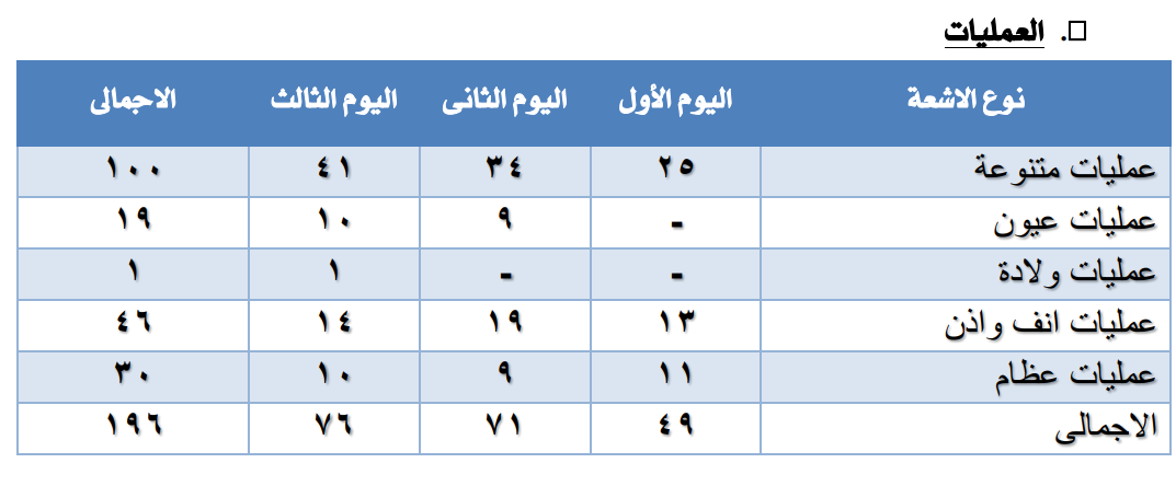 المشاركون بين أساتذة أطباء واطباء وفنين وخبراء ومساعدين ومتخصصين ومعاونين ومنظمين وطلبه وروتراكت 124فرد .